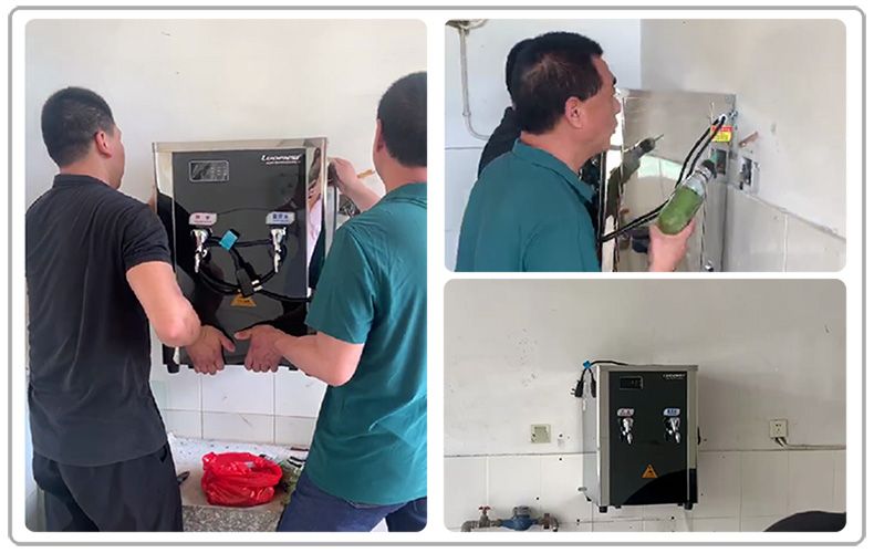 基于以上情况,洛恩斯为单位办公室提供了直饮水工程方案设计、设备购买、送货安装等一站式全程无忧解决方案,为两家单位提供了30台(LES-2AD30)步进式净热商务饮水平台,智能触控,步进式加热,避免重复加热,能节省70%的能耗,5级深度过滤,出水水质达到欧盟标准,可以同时接开水和温水,双层防干烧,大流量微废水设计,既安全,又节能、环保,较好地解决了单位职工的饮水安全问题,保障了员工的饮水健康。