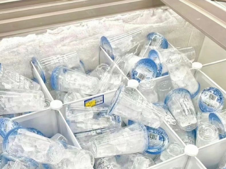 某茶饮品牌推出的1元冰水,凭借500ml大容量、高性价比,成为年轻人DIY冰美式、冷泡茶的 “神器”。便利店、超市的冰柜里,各类食用冰产品摆满货架,盒马数据显示,普通食用冰杯已蝉联回购榜榜首6天,超8000人购买。社交平台上,“冰水+咖啡液=冰美式”“冰水+茶包=冷泡茶”等创意喝法刷屏,用一杯冰开启夏日仪式感,成为新潮流。