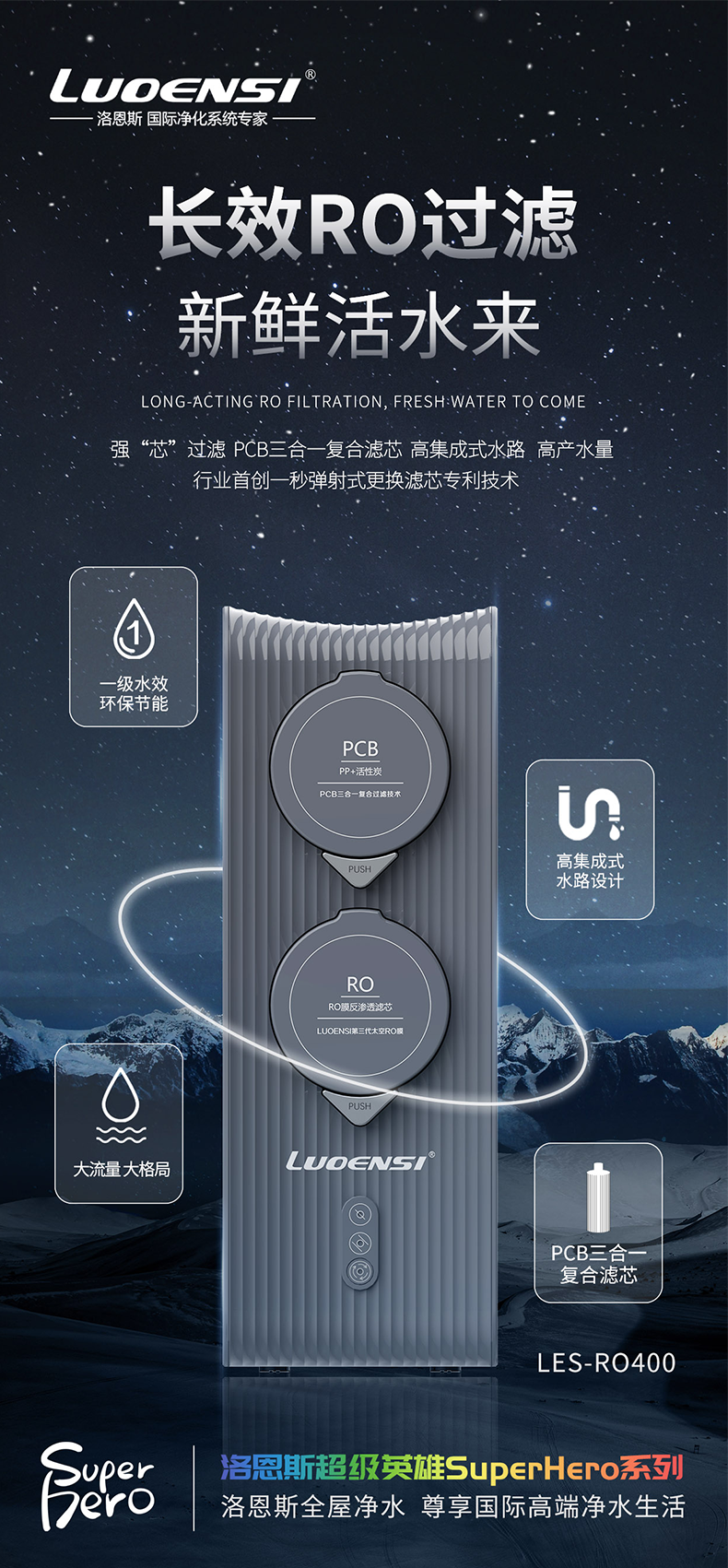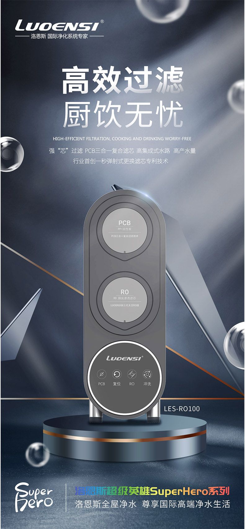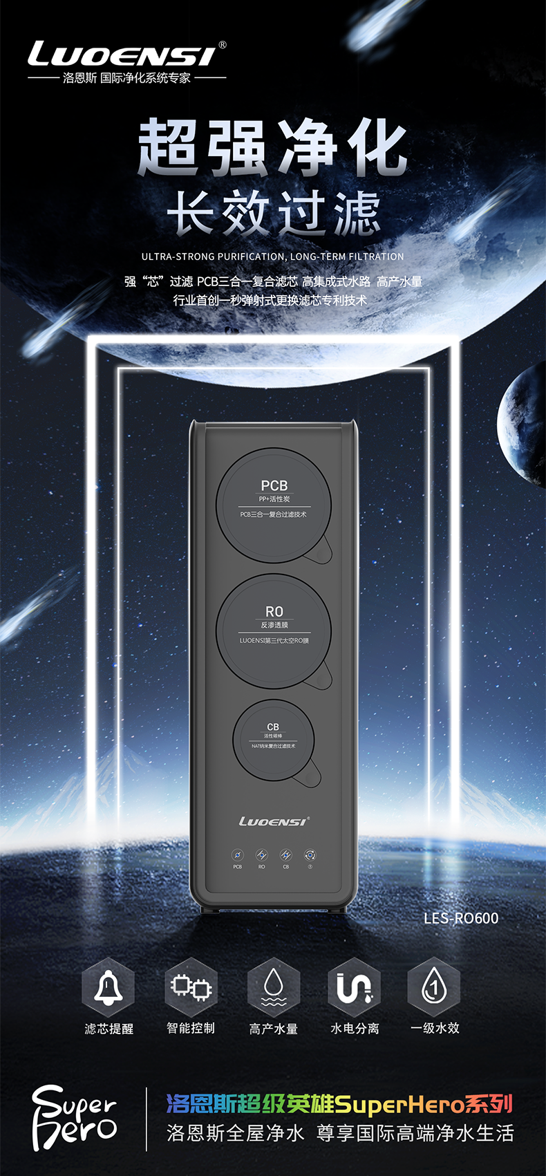 2023年3月24日,德国洛恩斯全屋净水家用新品上市,隆重推出(超级英雄SuperHeroRO纯水系列),6款新品均严格按照德国标准进行生产。洛恩斯净水此次上市的6款新品,首创者LES-P,探界者LES-RO75、超能者LES-RO100、冒险家LES-RO400、王牌官LES-RO600,集结领袖LES-RO1000,不仅在数量上实现了对行业的绝对引领,在产品竞争力上同样处于领先。在分体式饮用水净化装置专利技术的基础上,契合了当下中国用户对净水产品使用不断增长的迫切需求。